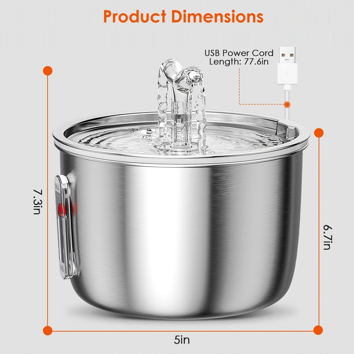 *Large Capacity*:Made of 304 stainless steel,durable and resistant to get rust and corrosion.With a generous capacity of 2L/67.6Oz,this pet water fountain ensures that your cat has access to an ample supply of water for 7 days. Suitable for small cats or dogs. No need to add water frequently anymore,really save your energy and time.
